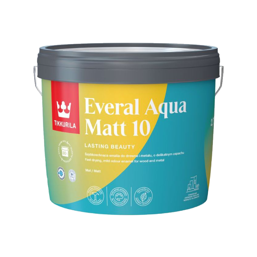 Revitalize your interiors and exteriors with Tikkurila Everal Aqua Matt 10, a high-performance, water-based acrylic enamel designed to deliver superior durability, versatility, and a stunning matte finish. Whether you're looking to refresh wooden trim, doors, or metal surfaces, this advanced paint ensures a smooth, even application while offering robust protection against the elements.