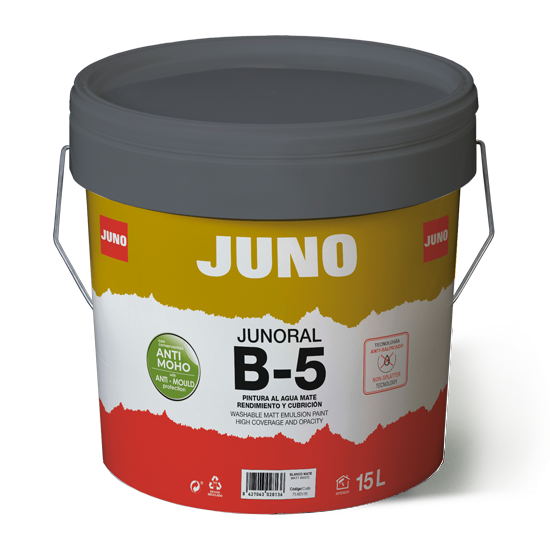 Versatile quality interior matt emulsion. Waterbased paint with great hiding power and coverage. With anti mould protection and non-drip/splatter formulation. Formulated with acrylic copolymers with anti-fungicidal and anti-mould agents. Suitable for all interior walls and ceilings. Cleaning and dilution with water. B-5 dries...