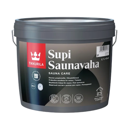 - Tikkurila Supi Sauna Interior Wax 0.9L – Rich in natural wax, this product enhances tone and texture while offering excellent resistance to moisture and heat.