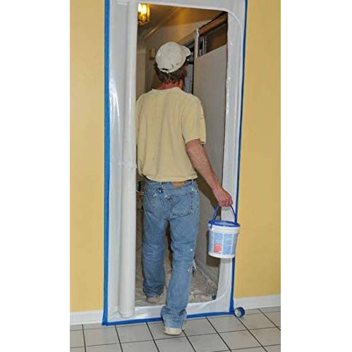 Our Anti-dust Zip Door is a heavy duty reusable polyurethane zipper door for separation of rooms during construction and decorating projects, ideal for when spray painting. The Anti-dust Zip Door prevents the spread of dust, spray, and asbestos particles beyond the work area. The curtain is suitable for multiple reuse. It's manufactured with a pre installed nylon zipper, and uses a heavy duty opaque white polyurethane for improved privacy - but which still lets light through. The pre-installed zipper allows you to install the Zip Door by fixing it with masking tape to the wall all the way round the door opening, including the bottom of the door - unlike self-installed zipper doorways where the unsealed bottom can still let lots of dust through as air moves around the building. Moving to and from other rooms is quick and easy with the zipper, which is installed in a 'D' shape allowing full and easy access through the opening. The unzipped door can be permanently rolled back and secured with the hook'n'loop cord, for unimpeded access when you have your hands full, or when you are moving larger bits of equipment like ladders between rooms - which can otherwise catch and damage cheaper dust proof zip up doorways. Securely attach the plastic sheet to the wall or architrave surrounding the doorway with the provided masking tape. Make sure you attach the sheet to the correct side of the doorway, Otherwise you may be unable to open/close any original door should you need to secure work area. Then simply unzip/zip when entering/leaving the room. Outer sheet dimensions approx 2.1 meters (high) x 1 meter (wide), Size of zipper door 1.9 meters (high) x 0.75 meter (wide). Overall Zipper length approx 3.2 meters. Anti-dust Zip Door is available in a single kit, and packs of 2, and bulk packs of 8 kits to save you even more.