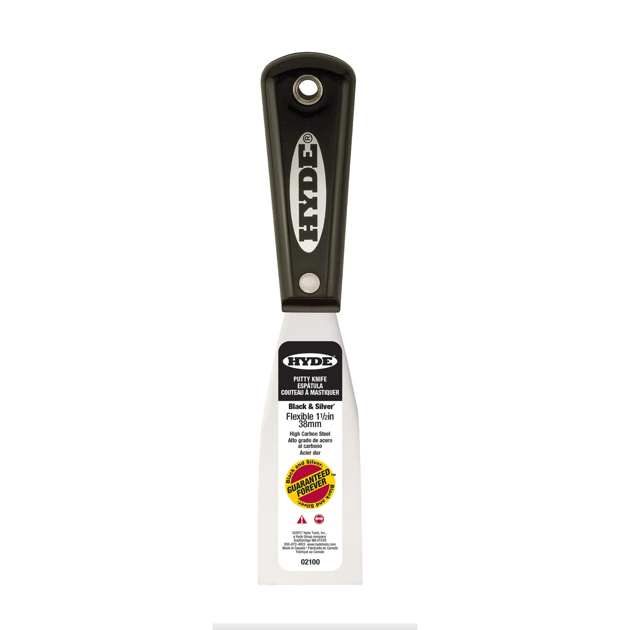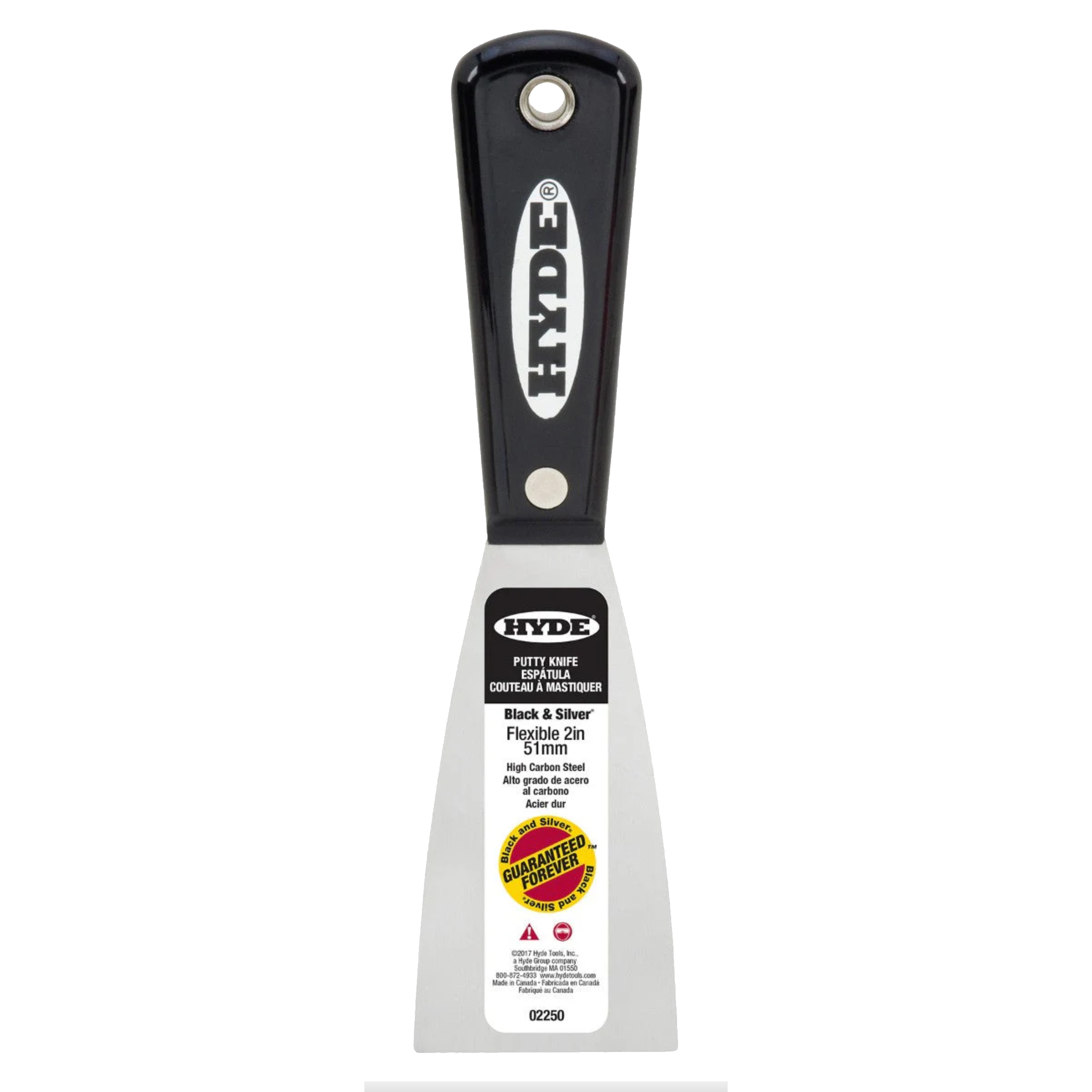 Crafted with high carbon steel, these time-tested Hyde Black & Silver® putty knives ensure durability and resilience, making them ideal for tackling even the toughest projects with ease. The durable nylon handle provides a comfortable grip and enhanced control, ensuring precision and accuracy during use.