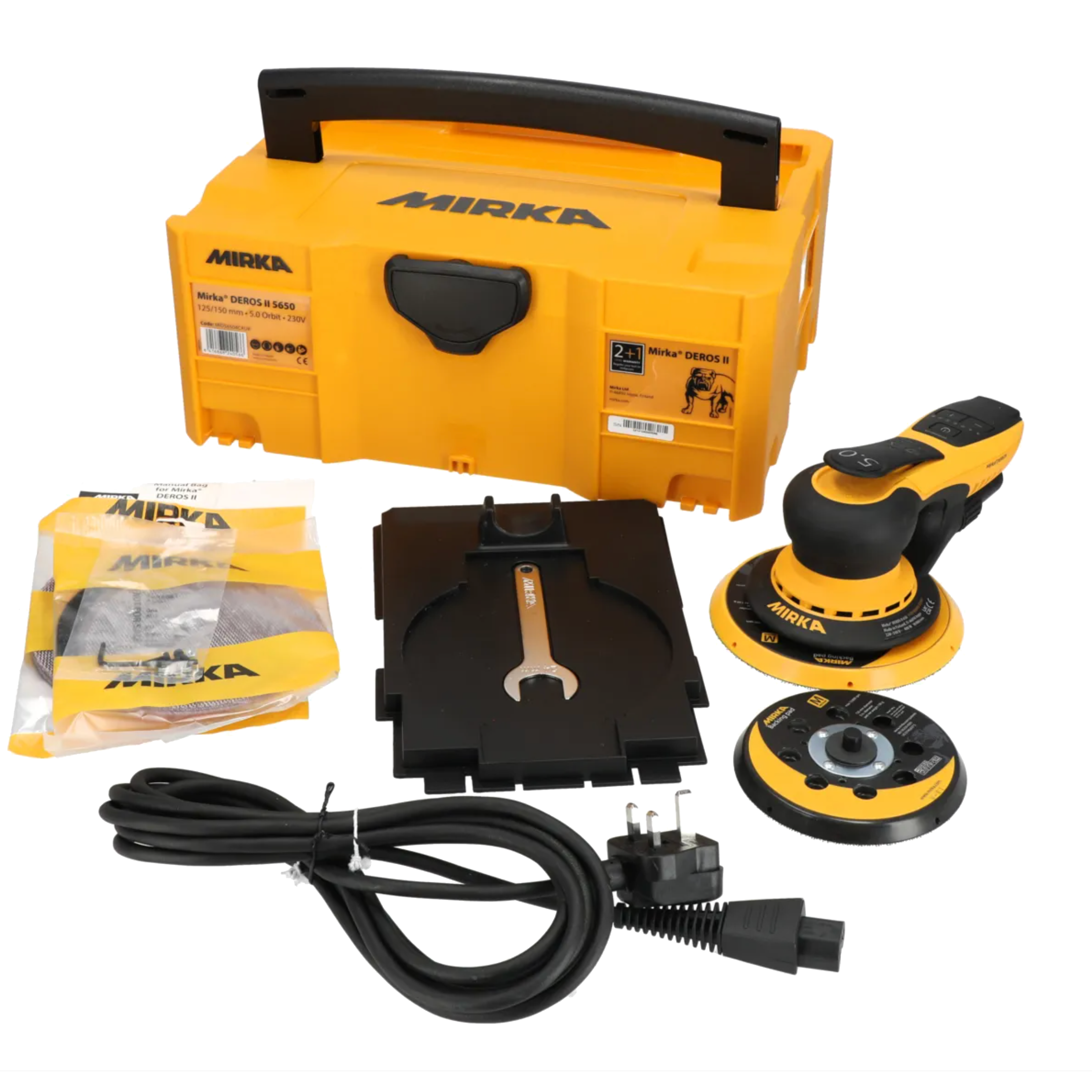 The Mirka DEROS II 5650 is part of the next generation of DEROS sanders, combining power, comfort, and precision in a compact design.