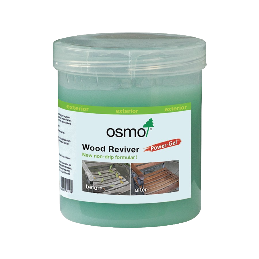 Osmo Wood Reviver Gel is most effective when applied onto bare, untreated timber. Existing treatments may block the revival process – always trial apply first. Protect/cover sensitive surfaces such as: plants, metallic components ( eg aluminium), sensitive stones and renders. After treatment the dried wood may appear quite light in colour. The fully refreshed colour of the wood should be revealed following the application of an Osmo finishing oil PRODUCT CODE 6609 APPLICATION TOOL Osmo Decking Cleaning Brush RECOMMENDED USE Exterior wood surfaces SIZES 500ml, 2.5L, 5L DRY TIME 24-48 hours CLEAN UP Immediately after use, with soap and water COVERAGE 10m²/L with one application, depends on condition of the wood COATS 1 coat, repeat if necessaryOsmo Wood Reviver Power Gel Decking Cleaner 500ml