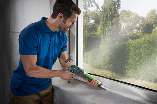 The Wolfcraft MG 550 is designed for easy handling and maximum efficiency. Its two-component handle fits comfortably in your hand, while the 360° rotatable cartridge shell allows for seamless use at any working angle. The automatic drip-stop function is a standout feature, preventing unwanted oozing of material and ensuring clean, controlled finishes and transitions, especially during simple acrylic and silicone applications. When you need a free hand, the convenient ladder hook lets you hang the gun securely.